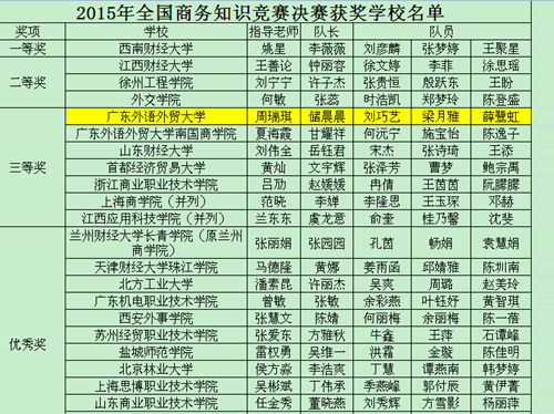 近日,商务部外贸发展事务局公布了2015年12335全国商务知识竞赛决赛获奖结果,由永利官网刘巧艺、梁月雅、储晨晨和薛鹭虹组成的BLUESKY代表队凭借精彩的表现在初赛和决赛中脱颖而出,获得全国三等奖的好成绩。