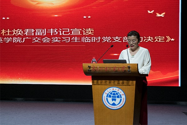 会议伊始,杜焕君副书记宣读《关于同意成立商英学院广交会实习生临时党支部的决定》,宣布临时党支部正式成立。